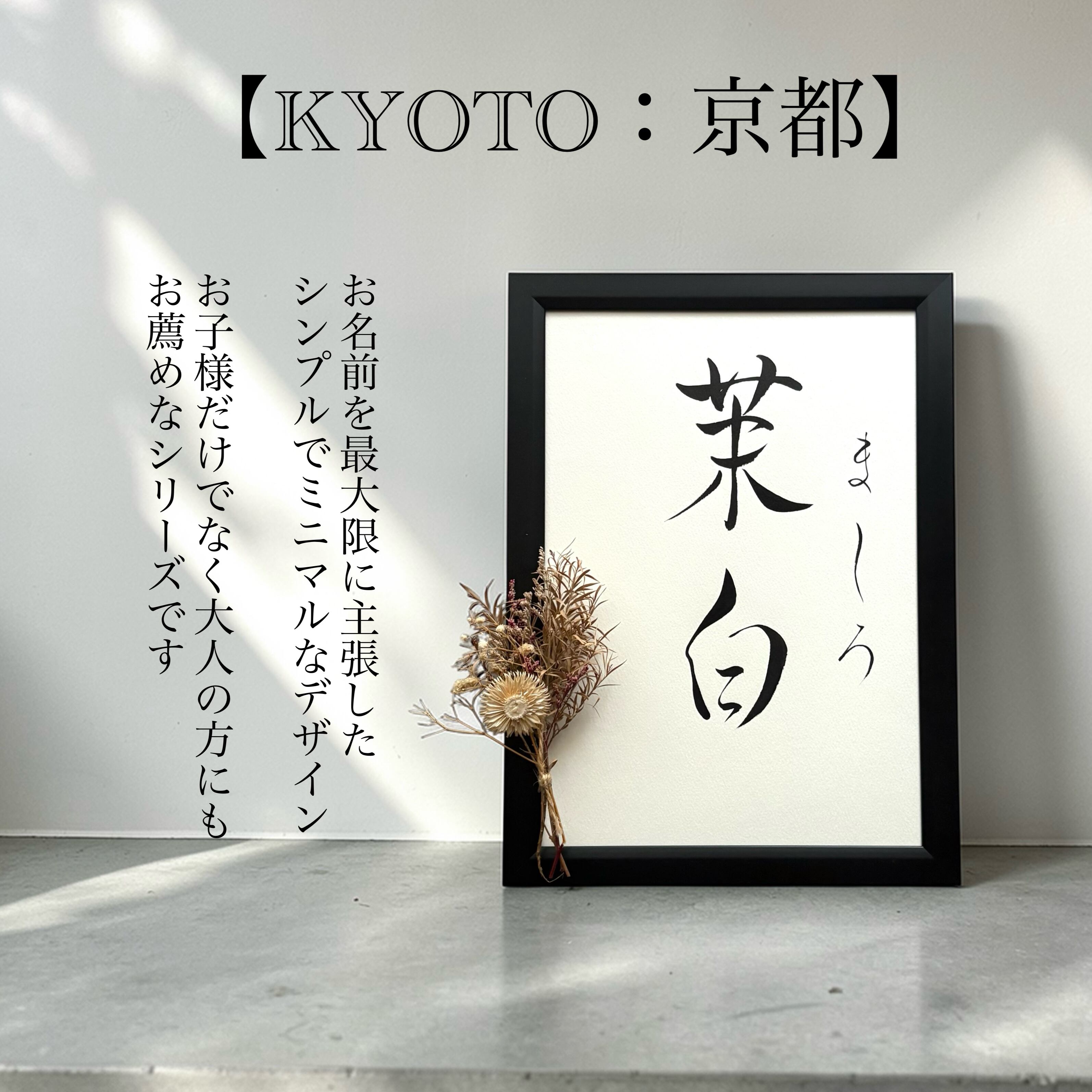 命名書 【Kyoto:京都】 手書き 書道家 (A4サイズ 額縁付き) / 出産祝い お七夜 お宮参り ギフト シンプル インテリア おしゃれ