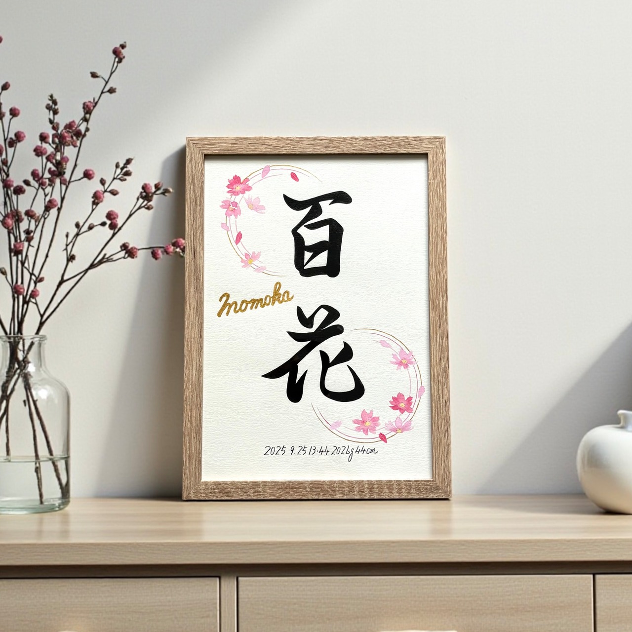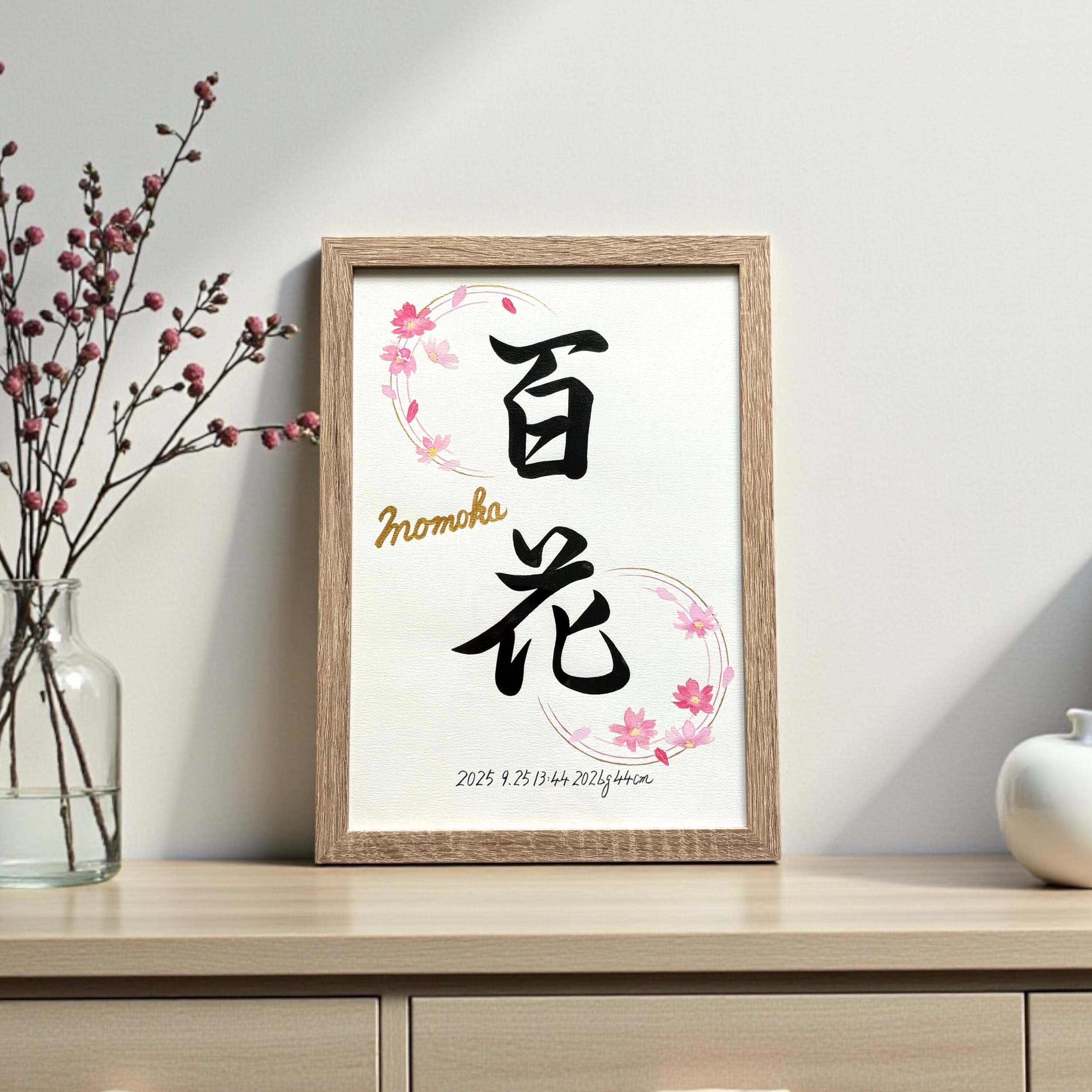 ◇揮毫内容:お子様のお名前、ふりがな、生年月日(西暦で揮毫)、出生時間、身長体重