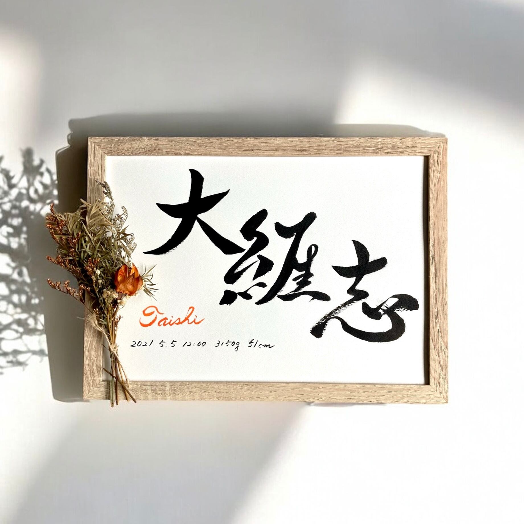 命名書 【Karasuma:烏丸】 手書き 書道家 (A4サイズ 額縁付き) / 出産祝い お七夜 お宮参り ギフト おしゃれ