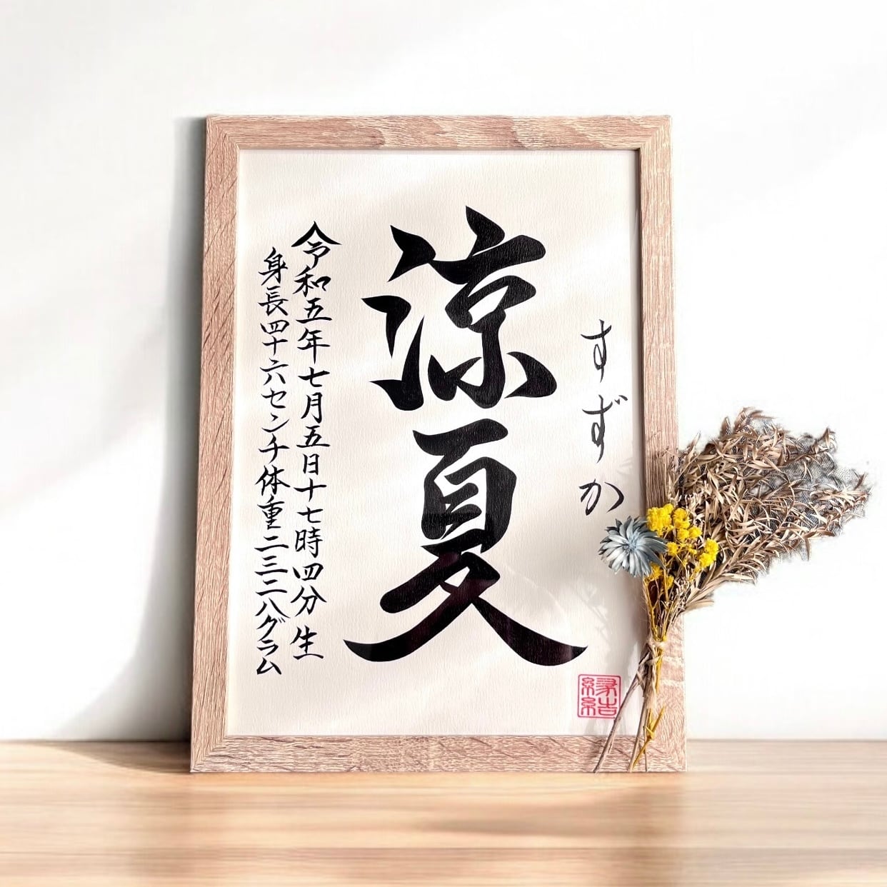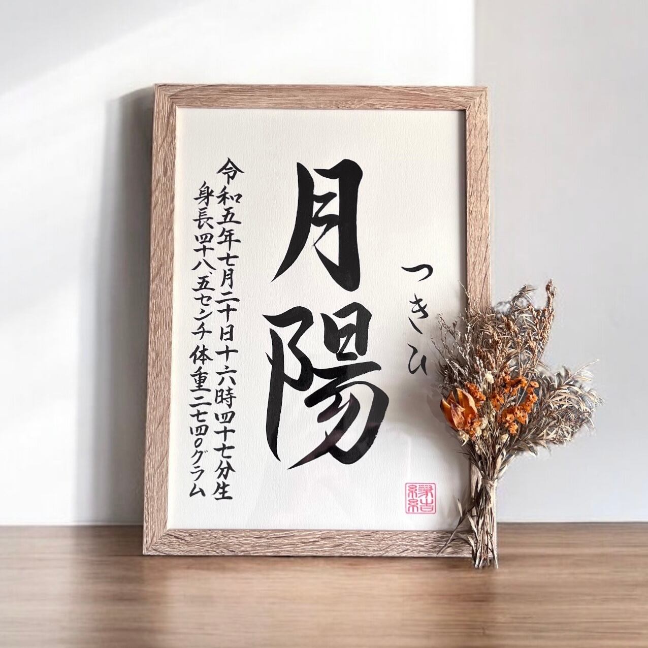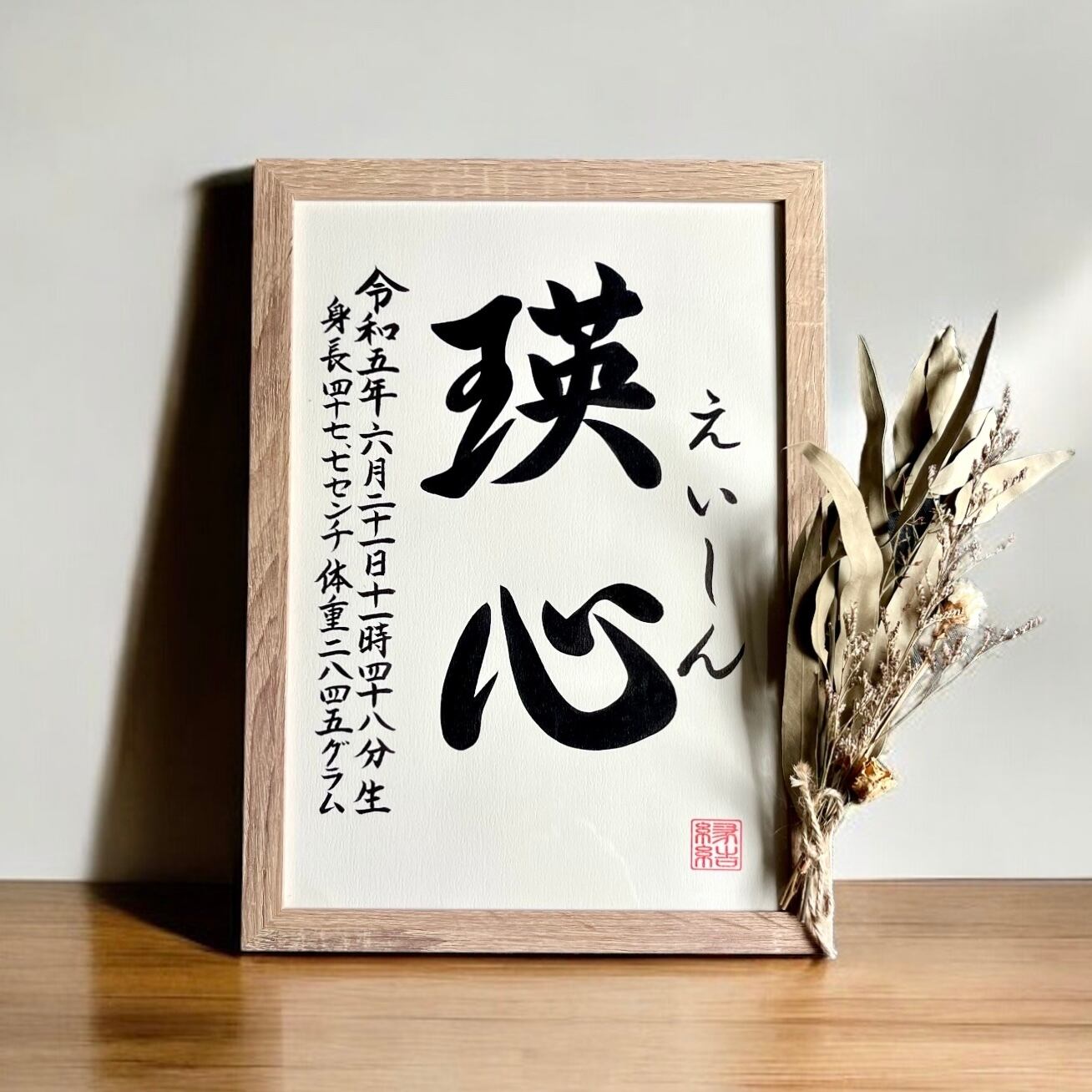 ◇揮毫内容:お子様のお名前、ふりがな、生年月日、出生時間、身長体重