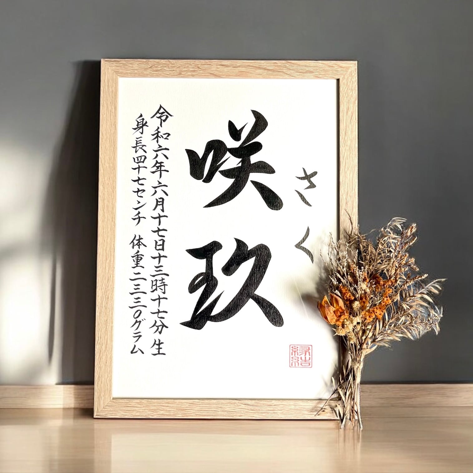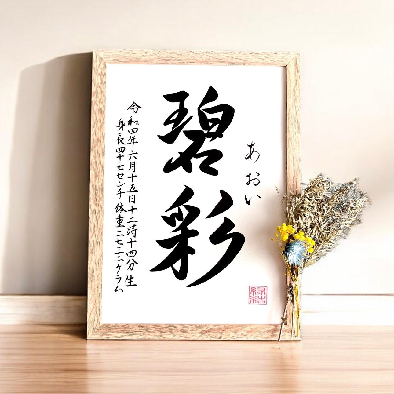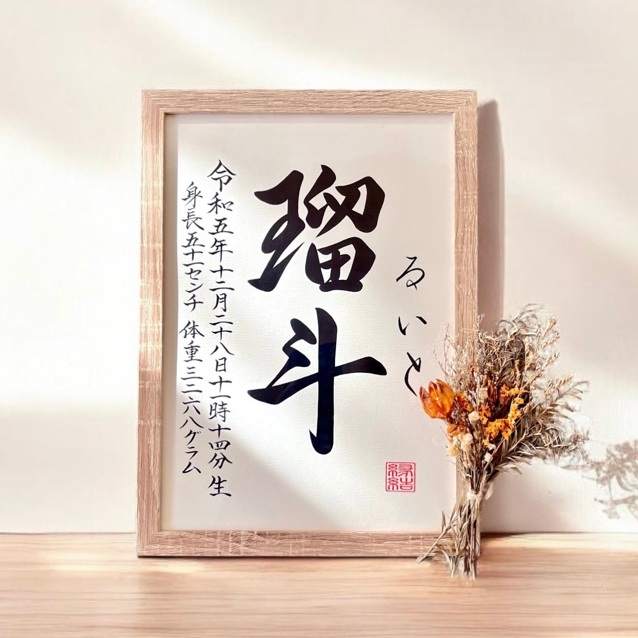 ◇揮毫内容:お子様のお名前、ふりがな、生年月日、出生時間、身長体重
