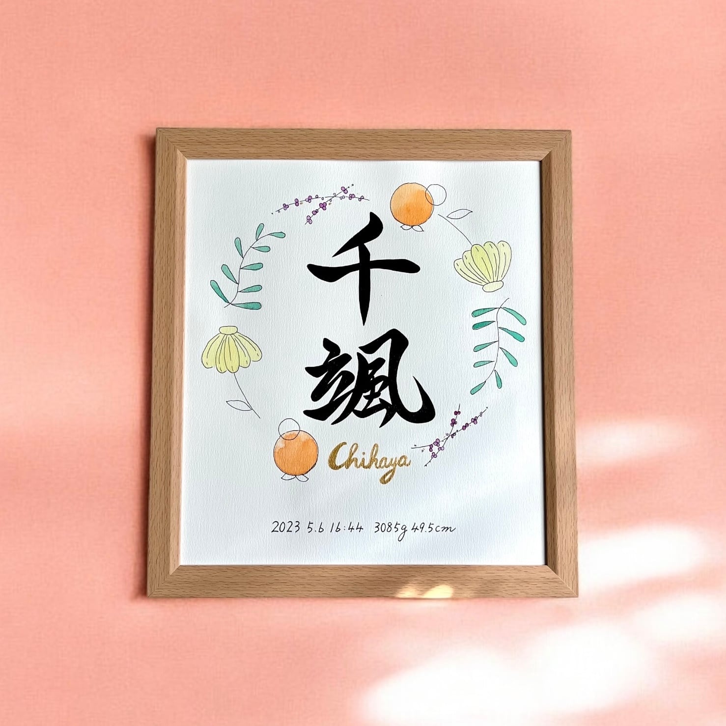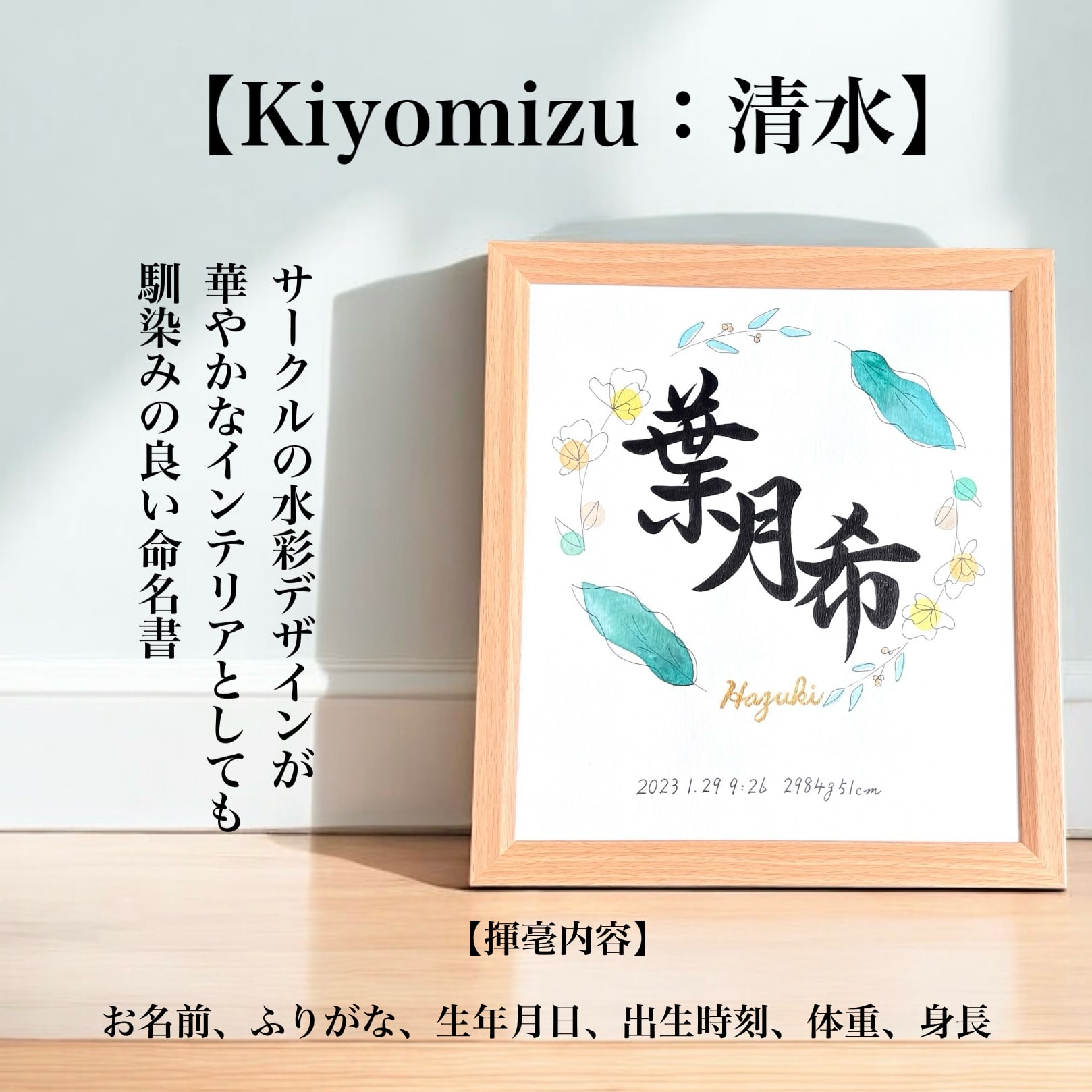 【Kiyomizu:清水】シリーズはお名前・出生情報・水彩部分まで全てを手書きで行い、季節を感じる華やかなデザインはインテリアとしてもお部屋に彩りを与えてくれます。