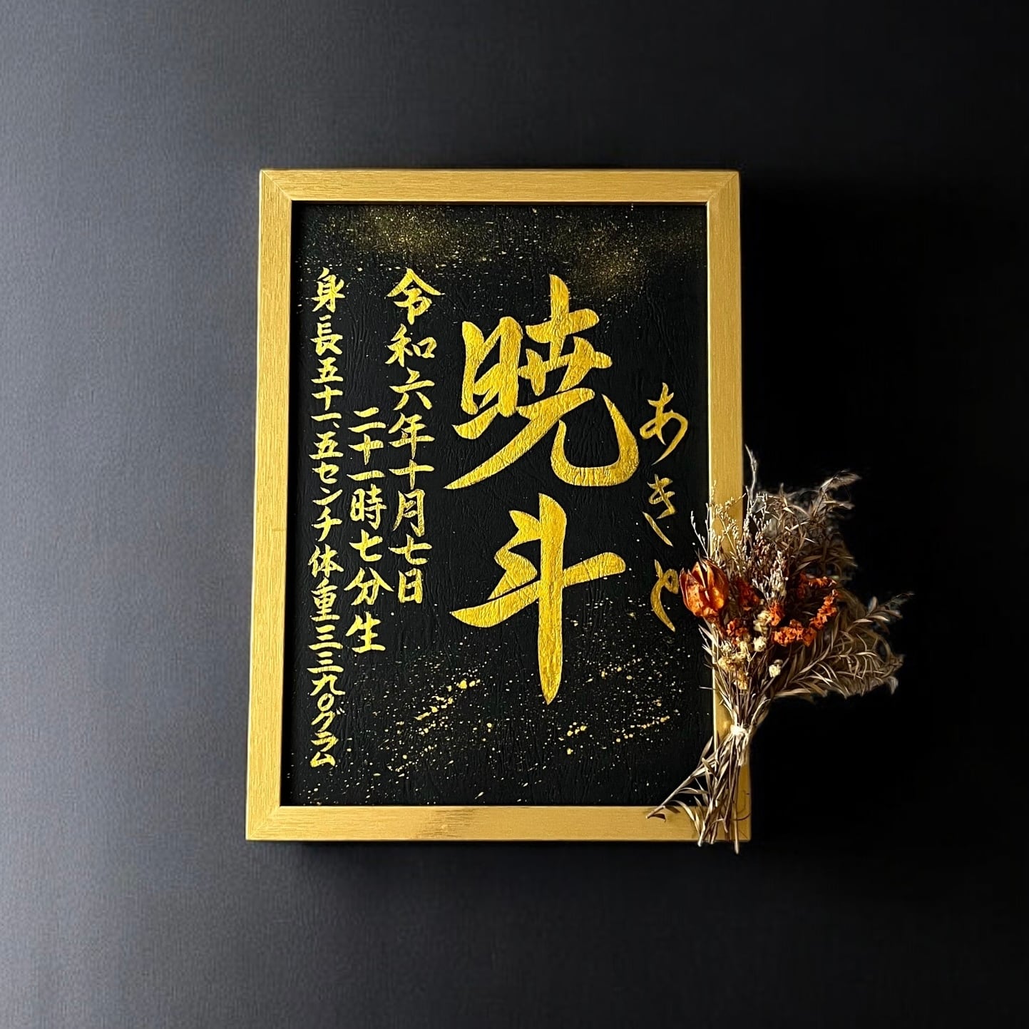 ◇命名書のサイズ:A4サイズ(ゴールドカラー額縁付き)
